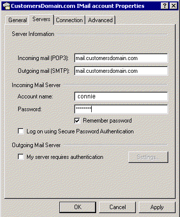 Click Apply, then click OK on the Internet Accounts box when you have completed these steps.